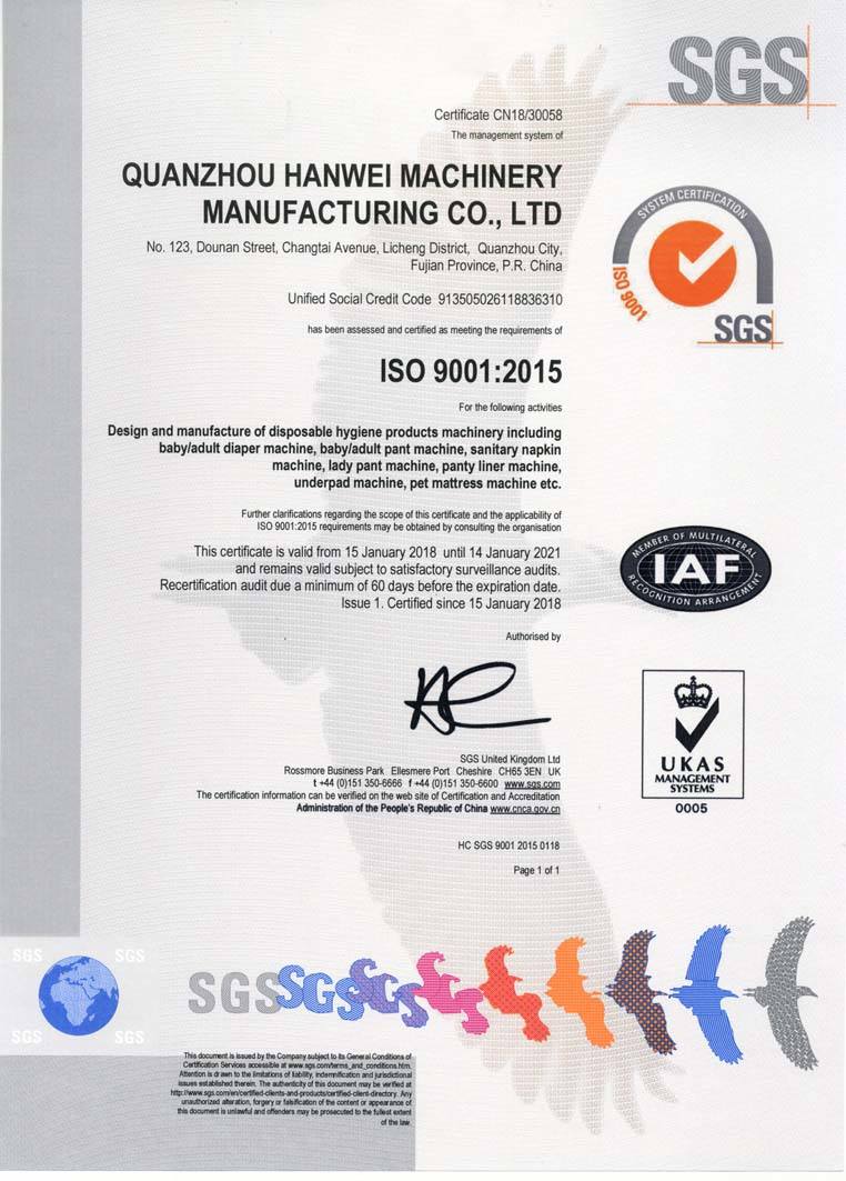 泉州市汉威机械制造有限公司是一家集生产、研发、销售、服务为一体的高科技企业。一直秉承尽善尽美的思想,未来,泉州市汉威机械制造有限公司将在现有的基础上,努力使“汉威制造”始终处于国际技术的水平,打造“百年汉威”。为实现这一目标,汉威公司务实创新,近日公司引进ISO9001:2015质量管理体系,通过对全体员工的宣传、培训,建立了一套符合国际标准要求的质量管理体系,并严格按照质量管理体系文件中的规定执行、实施,在执行过程中不断的改进和完善,使公司形成了一个系统、完善的管理体系,提高了全体员工的工作质量和工作效率,进一步保证了产品质量、服务质量和公司的管理质量,为公司持续发展,不断改进和提升奠定了坚实的基础。审核专员在我司特派专员的陪同下,各个部门的全力配合下,对我司质量管理体系进行了细致严谨的审核,肯定了我司质量管理工作。后ISO9001:2015质量管理体系认证顺利通过。于2018年1月15日获得了ISO9001质量管理体系认证证书。